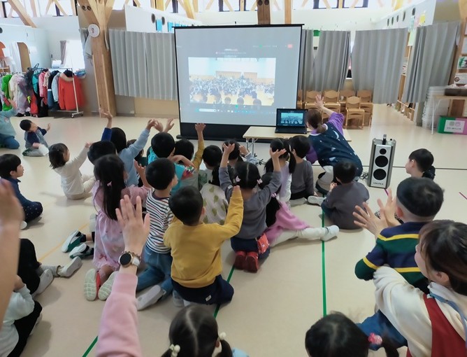 画面を通して遠く離れた幼稚園の子どもたちとお話する事ができました!