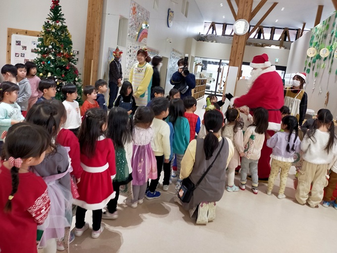 待ちに待ったクリスマス会♪なんと、サンタさんがプレゼントを持ってこども園に来てくれました!サンタさんへ質問したり一人ずつプレゼントを貰ったりと楽しみ、最後は皆でお見送り。素敵な一日になりました☆