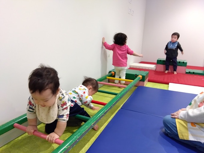 体を動かして遊ぶ事が大好きなすずらん組さん。巧技台からジャンプをしたり、梯子を渡ったり、時にはかけっこをしたりして思いきり遊びました。(0歳児 すずらん組)