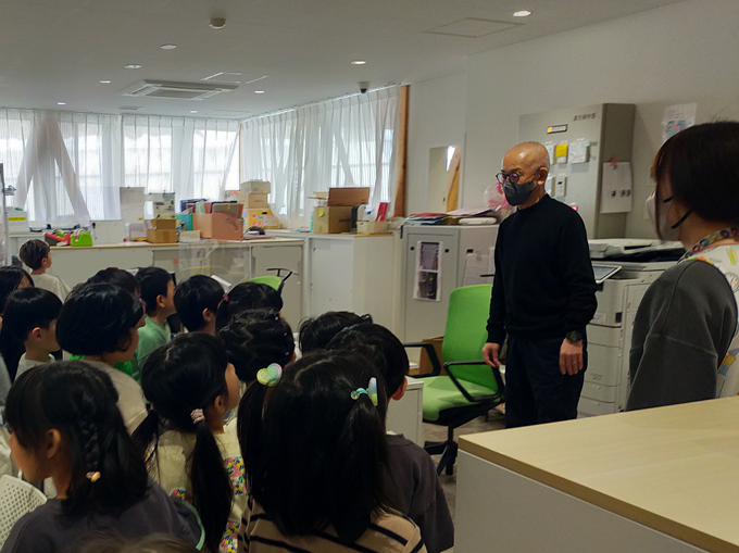 年長さん全員での最後の登園日。お世話になった先生方や給食さんに感謝の気持ちを伝えに行きました。“ありがとう”“いつもきゅうしょくおいしかったよ”“ランドセルみせにくるね”と沢山気持ちを伝える姿が見られましたよ♪