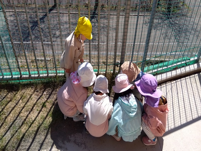 「アリさん、でておいでー!」と皆でアリ探しが始まりました。「いた!」と草の合間から出てきた所を発見し、皆でじっくり観察を楽しみましたよ♪