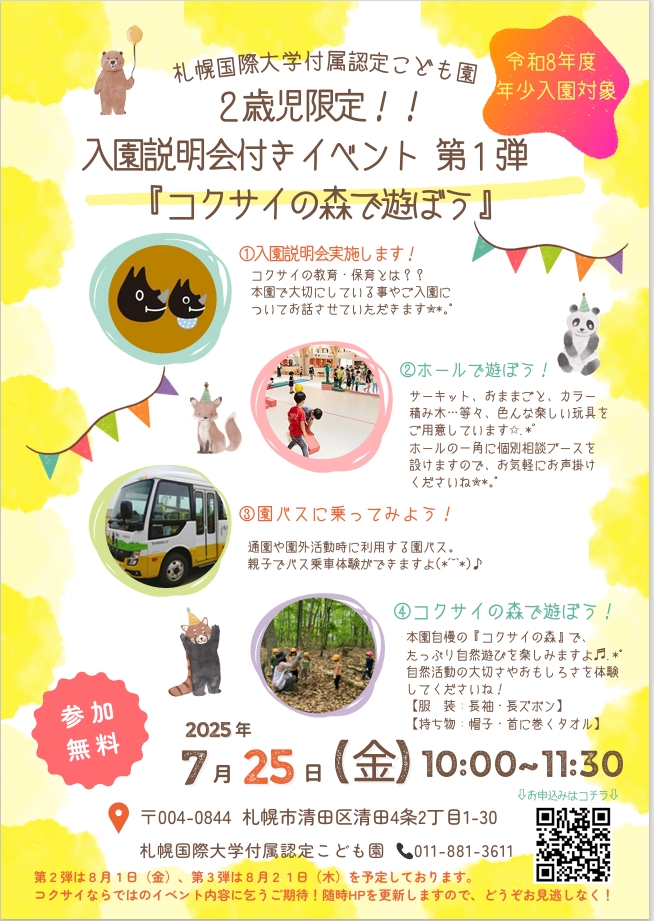 【7/25】2歳児限定!!入園説明会付きイベント第1弾の申し込みを開始しました!