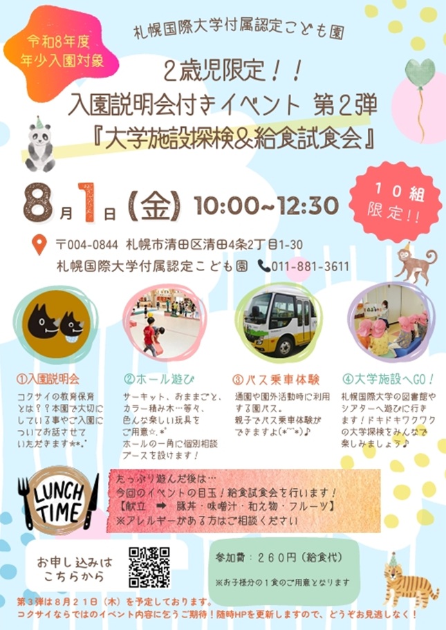 【8/1】2歳児限定!!入園説明会付きイベント第2弾の申し込みを開始しました!
