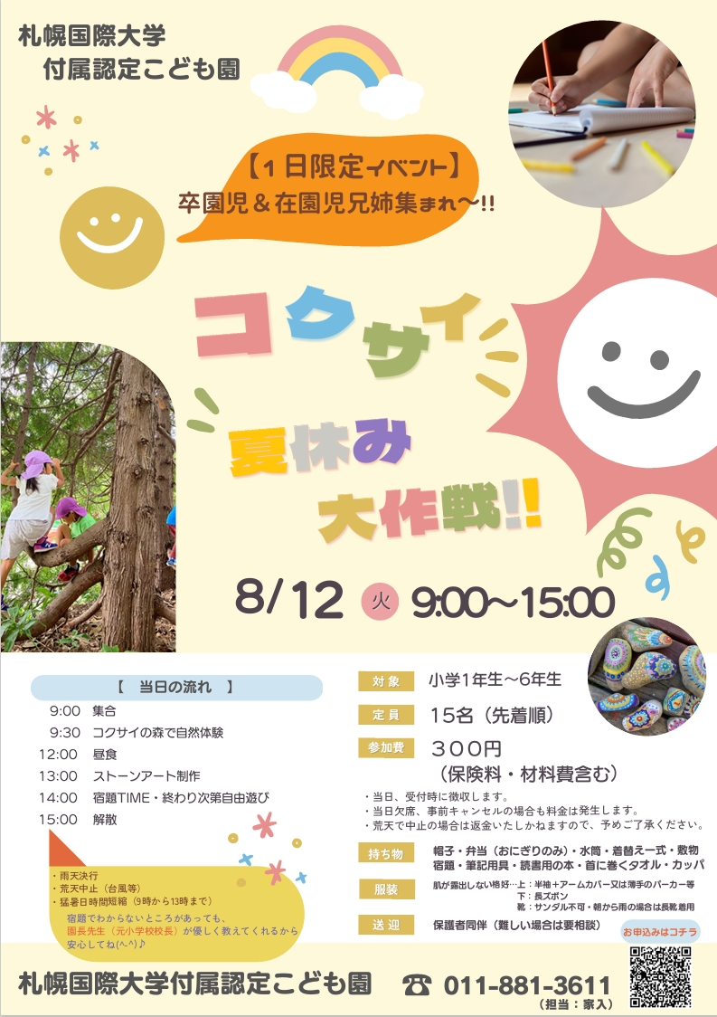 夏休みに小学生対象の1日限定イベントを開催します(^-^)