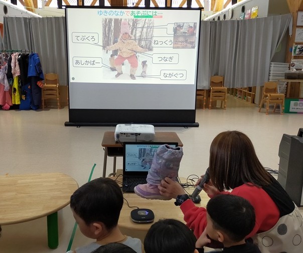 画面を通して遠く離れた幼稚園の子どもたちとお話する事ができました!