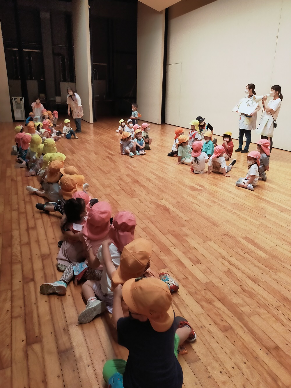 大学のシアターで大きなかぶごっこをしたよ! 美味しいかぶは抜けたかな?
