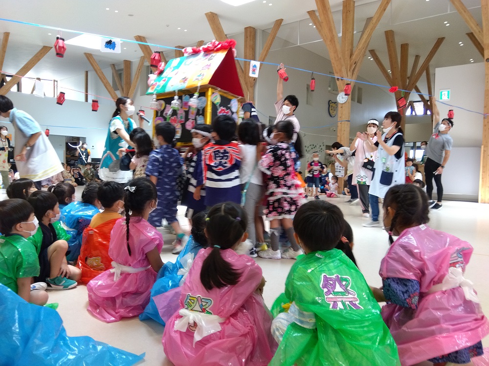 手作り浴衣を作って縁日に参加したよ! 年長組のおみこしもかっこよかったね☆