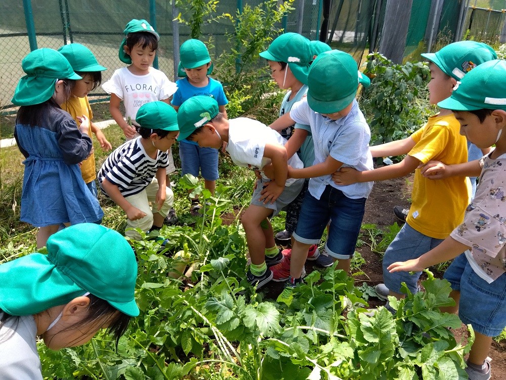 皆で育てた大根を収穫したよ★ 『うんとこしょ、どっこいしょ』と力を合わせて抜きました!