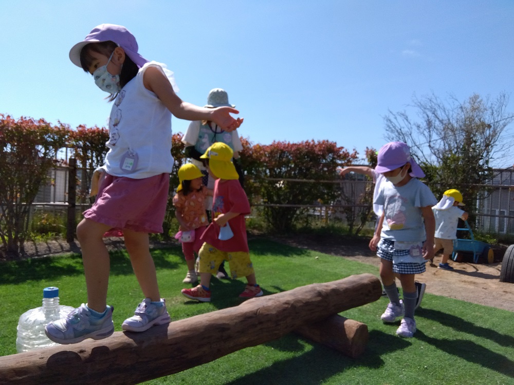 木の丸太から落ちないようにドキドキしながら渡っていきます♪