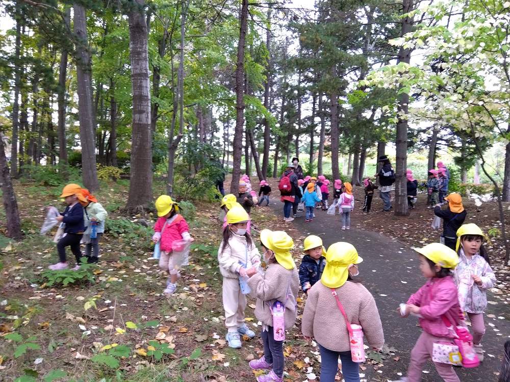 厚別北若葉公園に行きました! 落ち葉の道を通ってたくさんのどんぐりを拾ったよ!