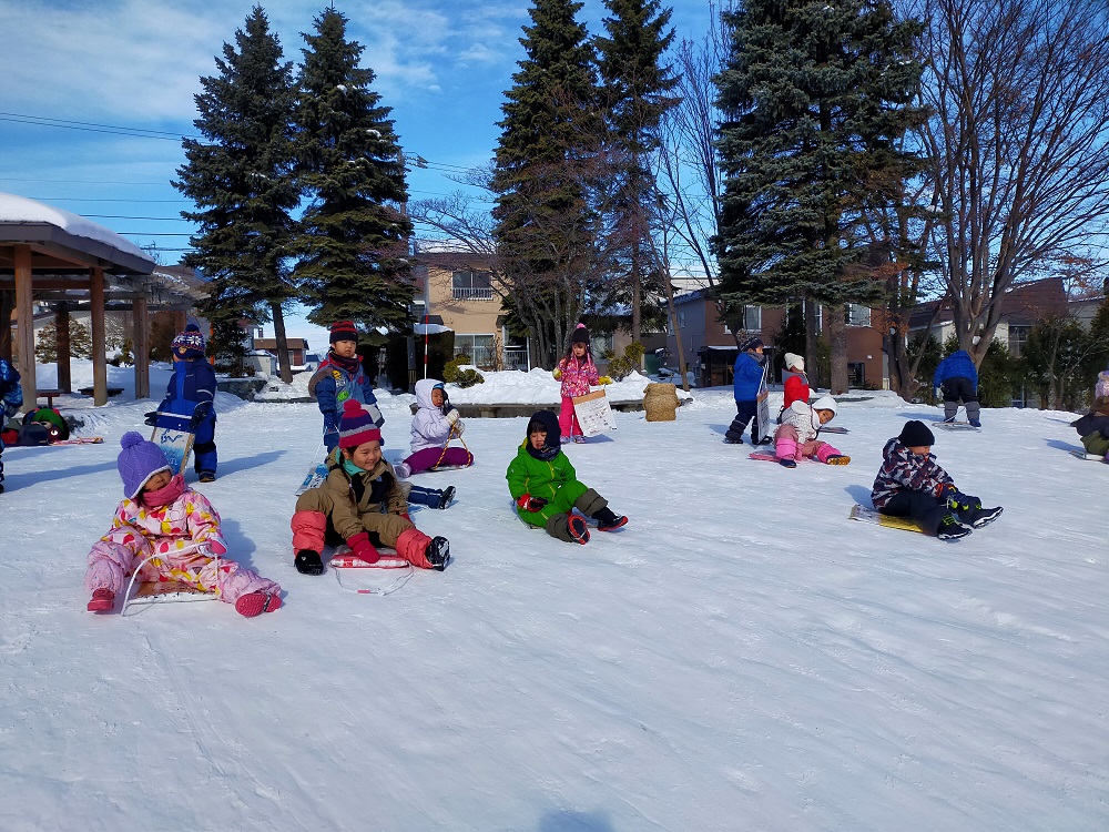 バスに乗って吉田川公園に行ったよ♪ そりすべりとっても楽しかったね!