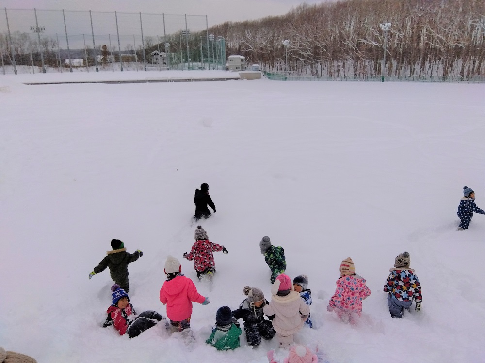 札幌国際大学の広いグラウンドで思う存分雪遊び!