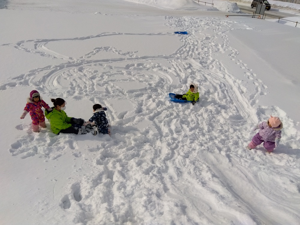雪山を滑ったり寝転んで空を見たり…と思いきり雪遊びを楽しんでいます♪