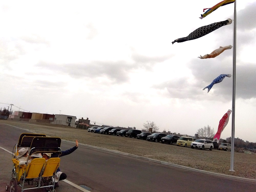 心地よい風に泳ぐこいのぼりを見に行きました。 ポカポカと暖かい日が増えこれから戸外で遊べる事が楽しみですね♪