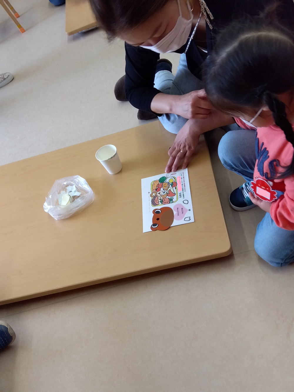 ブロッコリーやトマトが好きなお友だちもいて、「どれにしようかな?」とお母さんと一緒に楽しみましたね。そして、素敵なシール帳が出来上がりました!