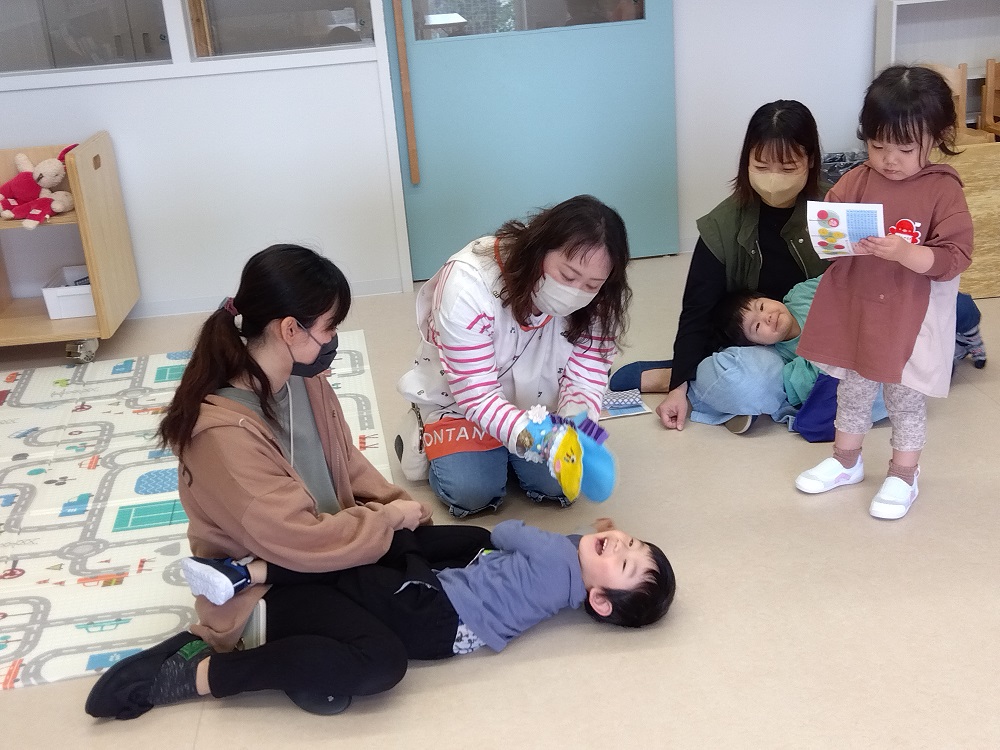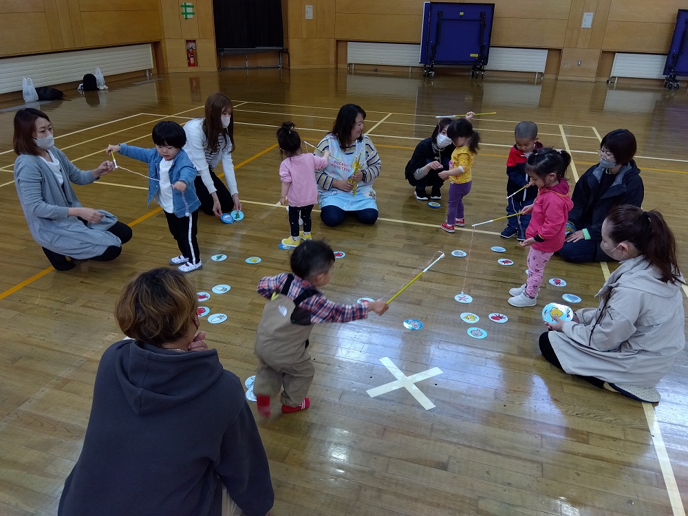 今回のひよっこくらぶでは、親子でリズム遊びを楽しみました。