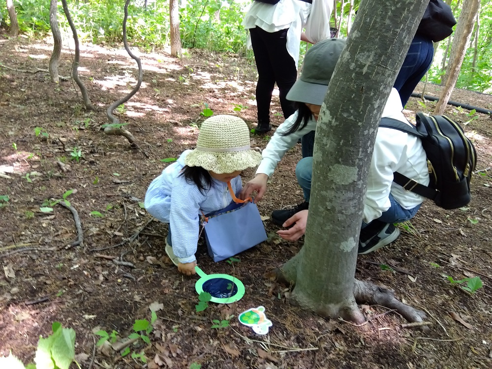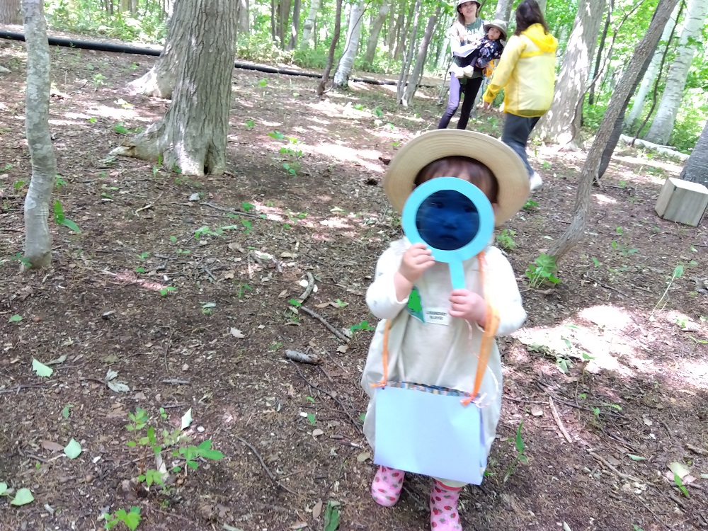 今回は、虫メガネと虫バックをもって森の中を探検です♪