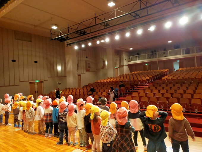 大学のシアターで発表会の練習♪ 大きな声で歌ったり踊ったり楽しんでいます☆