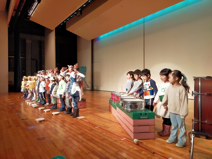発表会でブレーメンのおんがくたいをしました♪ 楽器演奏もして楽しい思い出となりましたね!