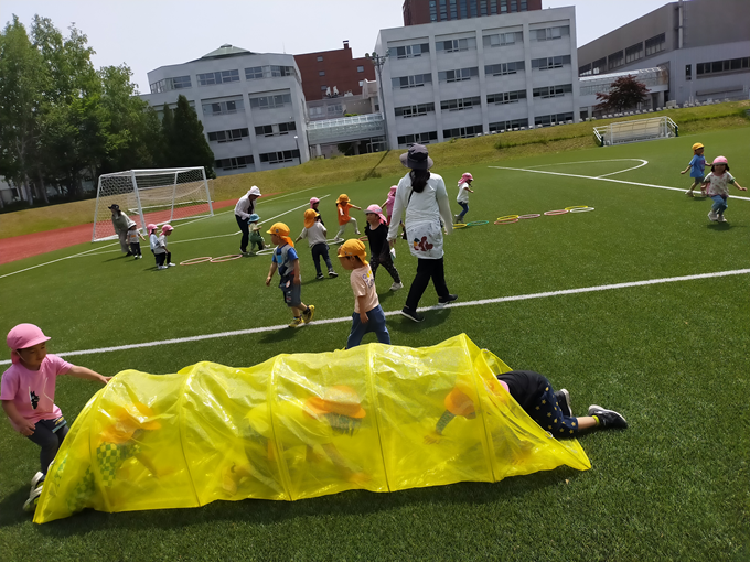 年少組さんと大学のグラウンドで遊びました♪