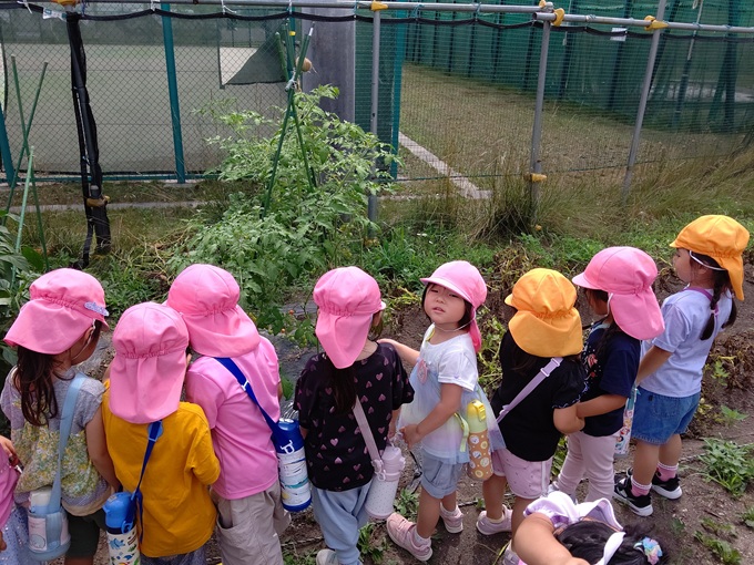 畑で育てているミニトマトが大きくなってきました。少しずつ収穫もできるようになってきたので皆で美味しく食べたいと思います!