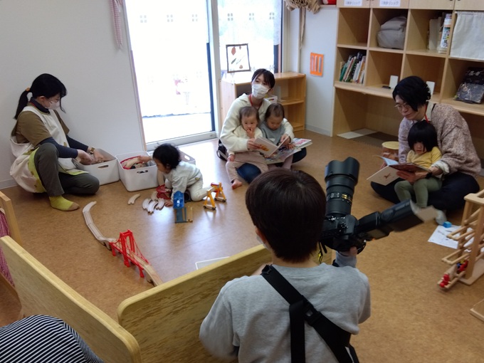 年に一度の乳児部の保護者参加行事「ミニお楽しみ会」普段の遊びを親子で楽しもうという機会です。園でお気に入りの絵本をお父さんに読んでもらったり、自然物を使ったリースをお母さんと一緒に作ったりと様々な遊びを楽しむ姿が見られました。(1歳児 たんぽぽ組)