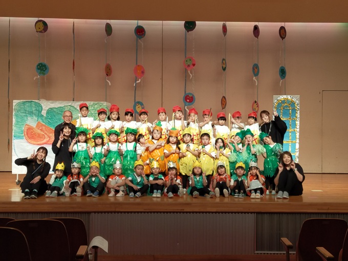 発表会で『やさいのパーティおおさわぎ』をしました♪ドキドキしたけど楽しんで歌や踊りをやり遂げる事ができました☆