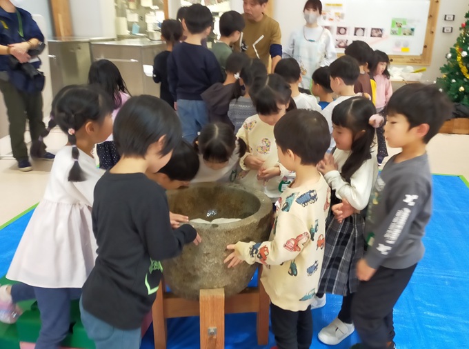 もちつきを行いました。みんなでついたおもちは柔らかくてとてもいい匂いがしましたよ♪